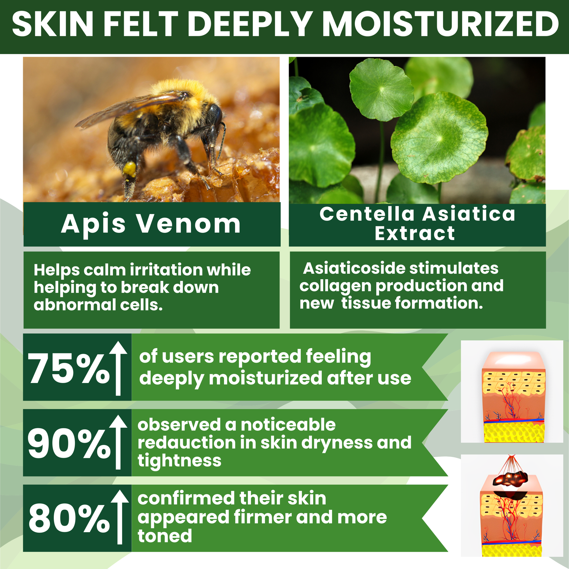 Meanwhile, Phospholipase A2 supports tissue repair and improves microcirculation, encouraging the skin to regenerate more effectively. Together, these compounds soothe inflammation, reduce visible growths, and restore skin balance—making this treatment both gentle and potent.