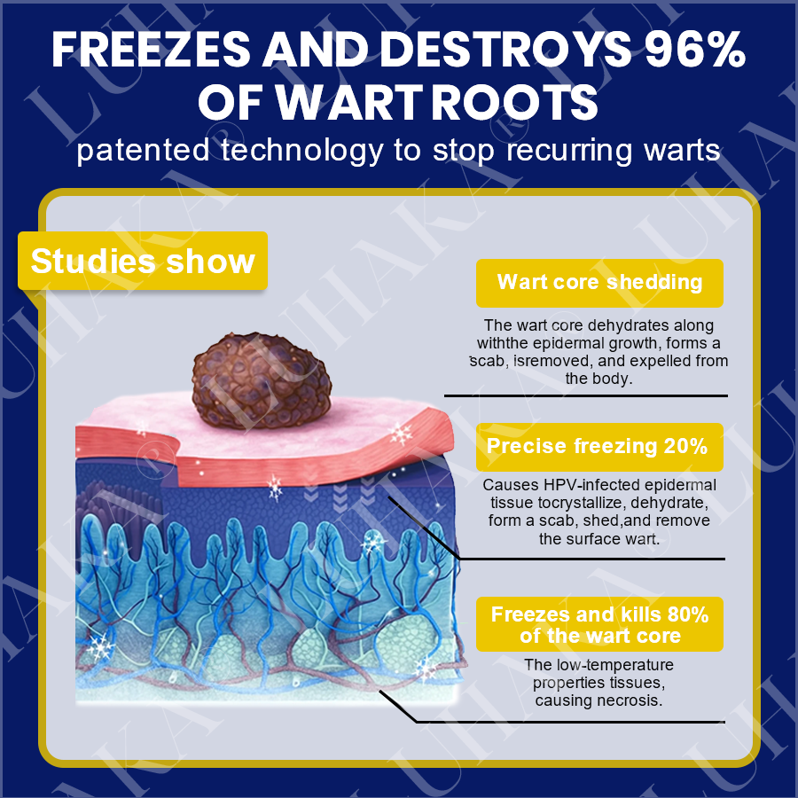 The main reason warts often recur after treatment is that only about 20% of the wart is visible to the naked eye, while approximately 80% of the wart tissue lies hidden beneath the skin’s surface. The human papillomavirus (HPV) often resides deep within the dermis or even deeper layers of the skin. If treatment only targets the visible surface lesions and does not completely eliminate the underlying viral infection, warts are likely to reappear. Additionally, most common wart removal products only affect the surface layer and cannot penetrate deeply enough to destroy the underlying affected tissue, making it difficult to fully eradicate the wart and leading to frequent recurrences.