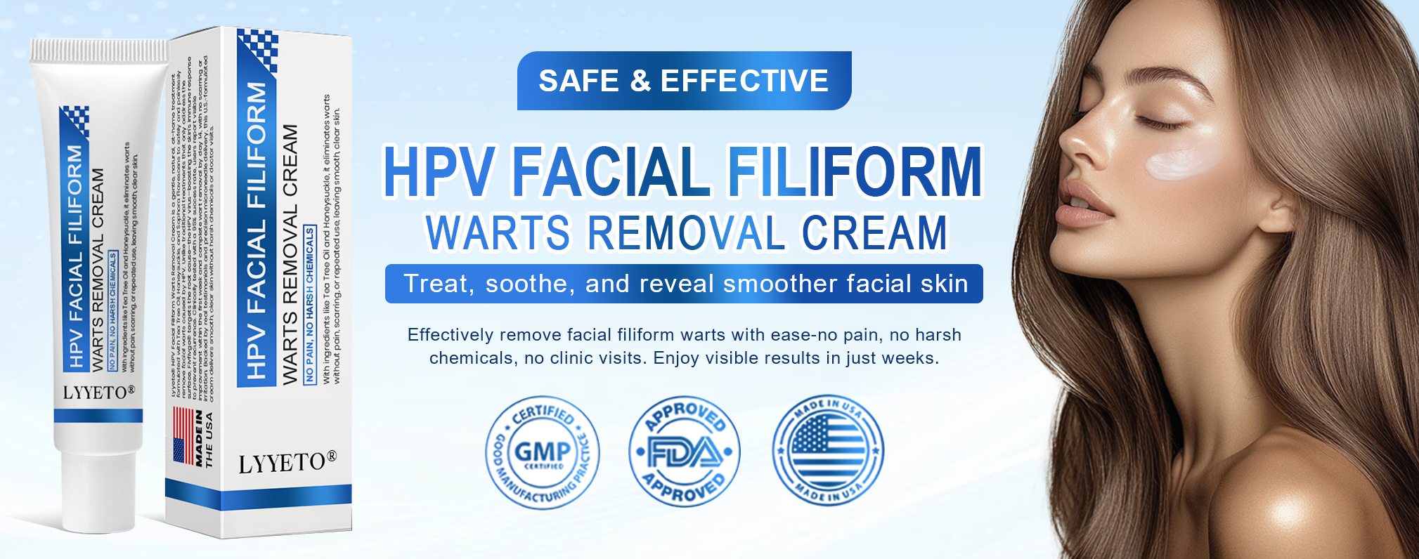 Lyyeto® HPV Facial Filiform Warts Removal Cream is a natural, at-home treatment that safely removes warts caused by HPV. With ingredients like Tea Tree Oil and Honeysuckle, it eliminates warts without pain, scarring, or repeated use, leaving smooth, clear skin.