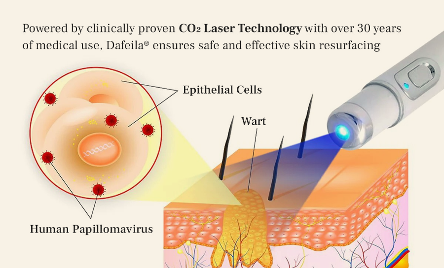 DAFEILA® harnesses advanced CO₂ laser technology—considered the gold standard in dermatology for over 30 years. As one of the first FDA-approved skin resurfacing methods, it offers a safe, precise, and effective solution for removing moles, warts, dark spots, and other skin imperfections.