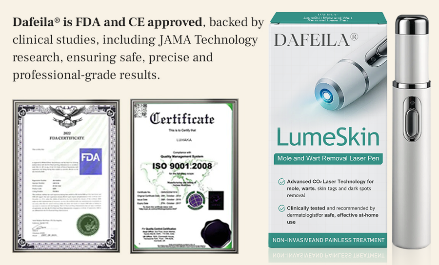 Effectively target moles, warts, dark spots, and other skin imperfections with theDAFEILA® LumeSkin Mole and Wart Removal Laser Pen.Engineered for safe and easy at-home use, this lightweight, precision device offers professional-grade results in just minutes. Noticeably clearer skin in as little as 2 weeks.