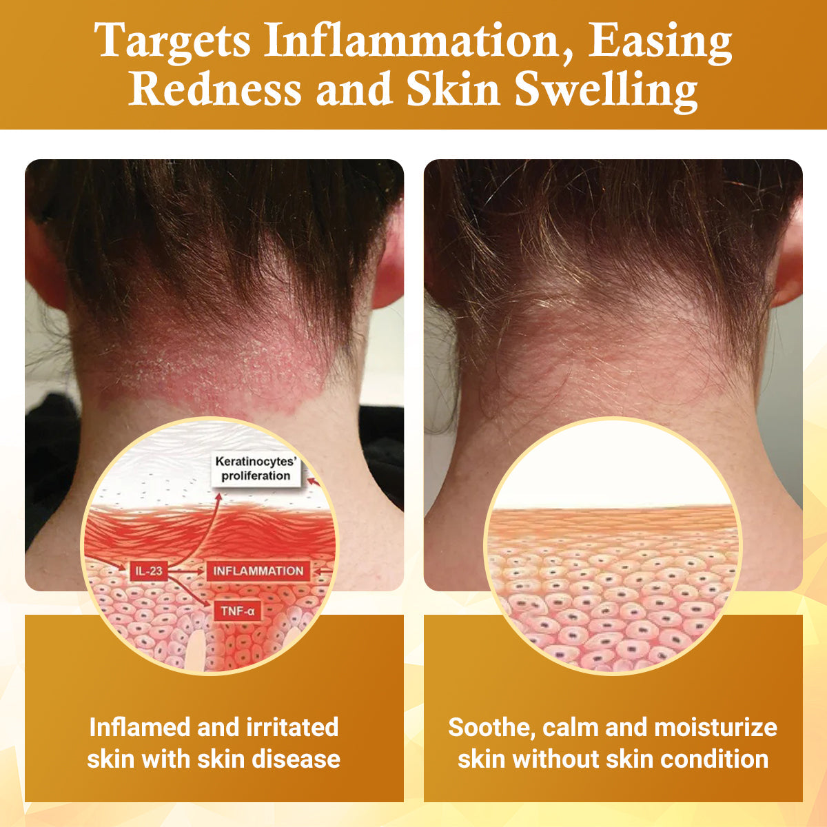 This advanced cream battles eczema, psoriasis, ringworm, and other skin issues with its potent blend of active ingredients. It calms itching and reduces inflammation, which helps to alleviate discomfort and redness associated with these conditions. The formula promotes healing by supporting the skin's natural repair processes and improving overall skin health. By targeting the root causes of irritation and promoting a balanced skin environment, it helps restore a healthier, more resilient complexion.