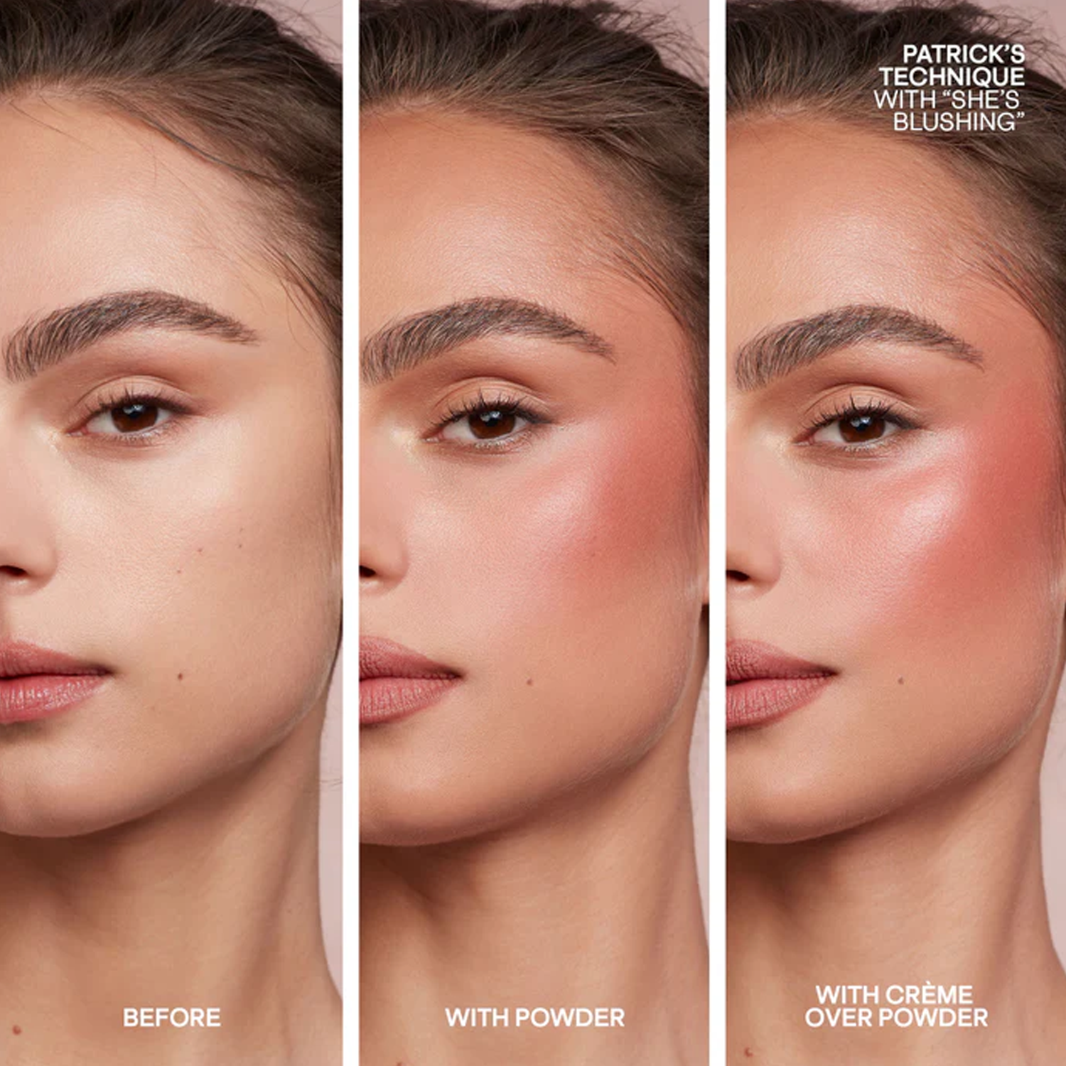The perfect gift set featuring a new shade of Patrick's viral crème & powder blush duo paired with a new and non-plumping shimmery lip gloss formula.