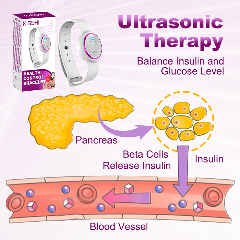 KISSHI™ Health Control Bracelet with Ultrasonic Therapy is also suitable for decreasing blood sugar levels. Simply by stimulating your pancreas to produce more insulin. To help in the metabolism of the food and liquids you consume and to stop the over-absorption of sugar.