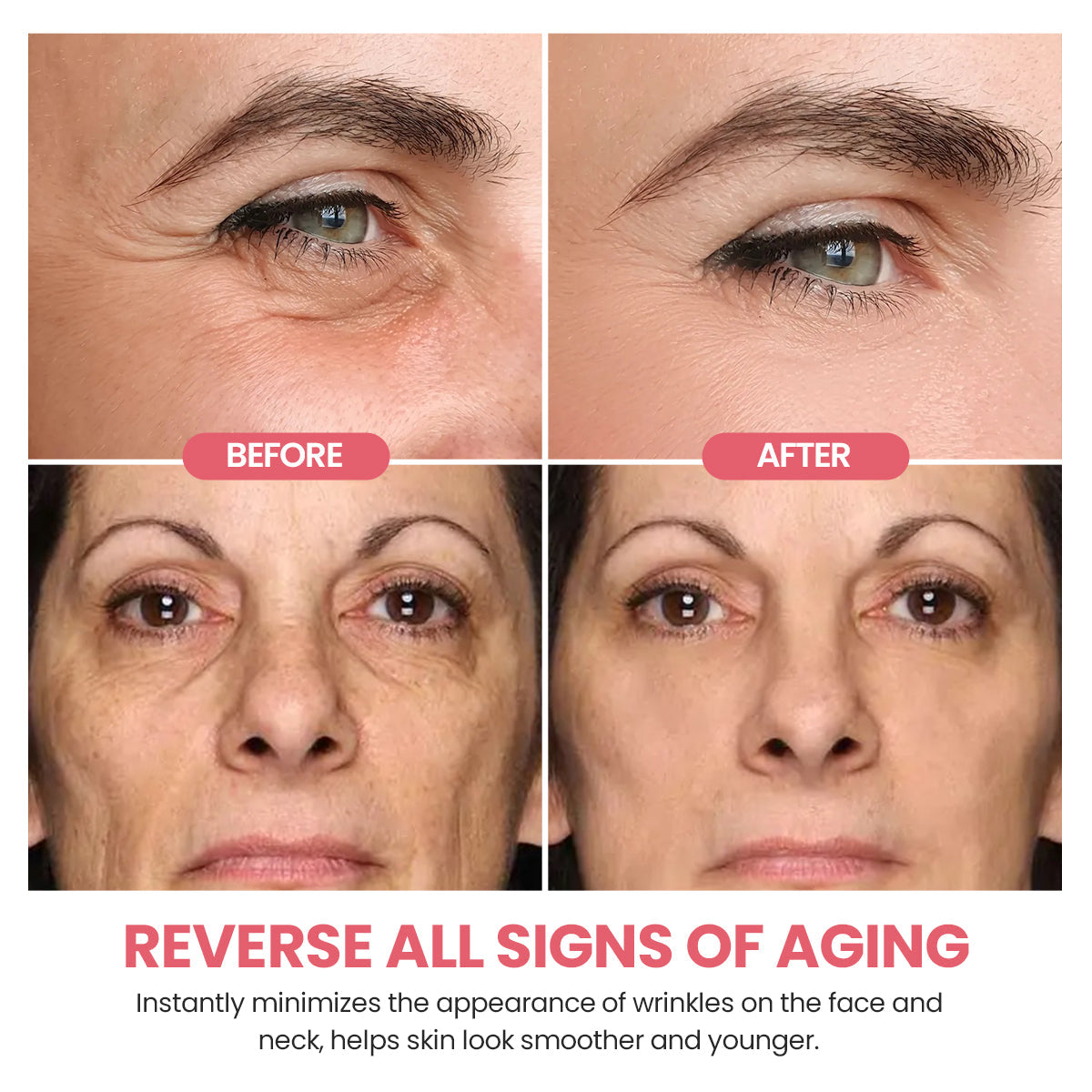 - Instant smoothness and wrinkle-free skin