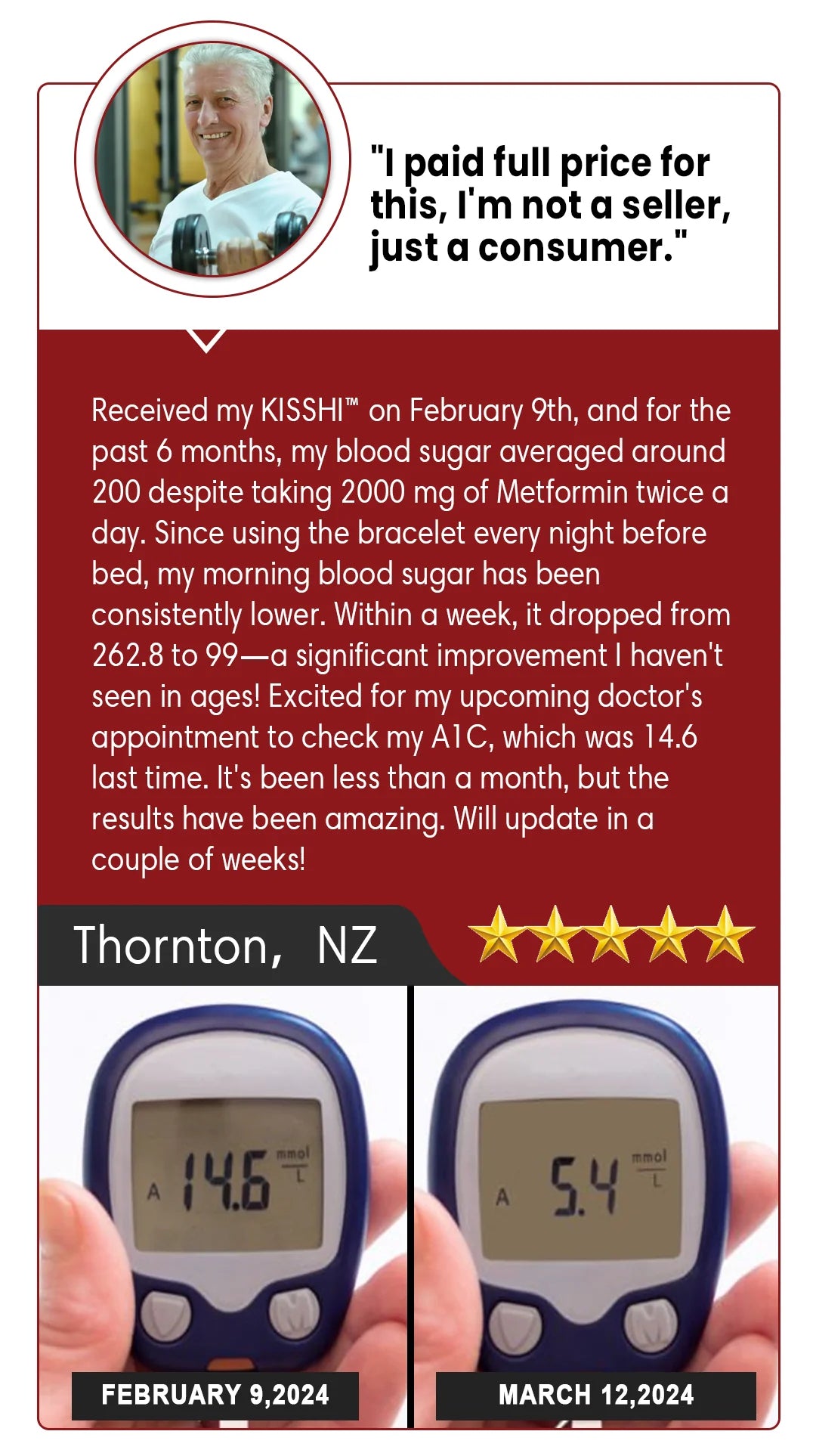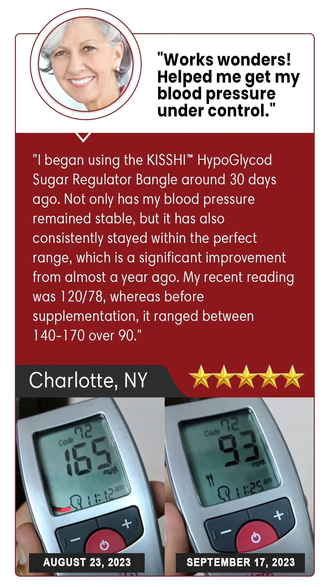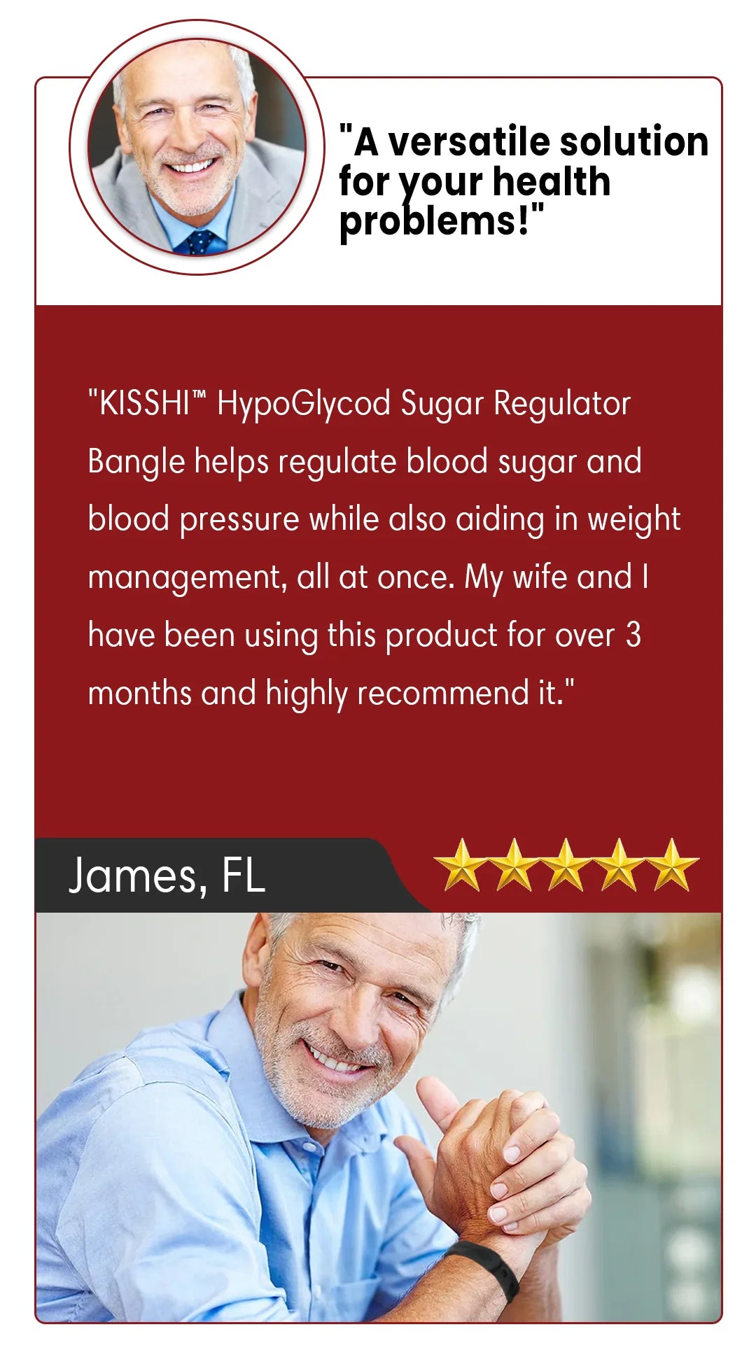 As a healthcare professional, I'veseen high blood sugar's harmful effects. That's why I support the KISSHI⢠HypoGlycod Sugar Regulator Bangle. It uses negative ion and far infrared tech to boost circulation, regulate insulin, and reduces inflammation and helps control blood sugar. Based on my patients' positive outcomes, I recommend it for safe, natural blood sugar control.